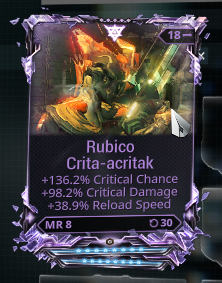 The Pretty Great Matter is we have Rubico Prime In coming. thats the Great Sniper Weapon. with Great 30% Crit Chance and 3.0x Critical Damage. . i am Expecting. some CD (Crititcal Damage) damage Increase and CC (Critical Chance) increase in Rubico Prime. Bcoz , i already having a Riven for that. you can see that riven stats down.
